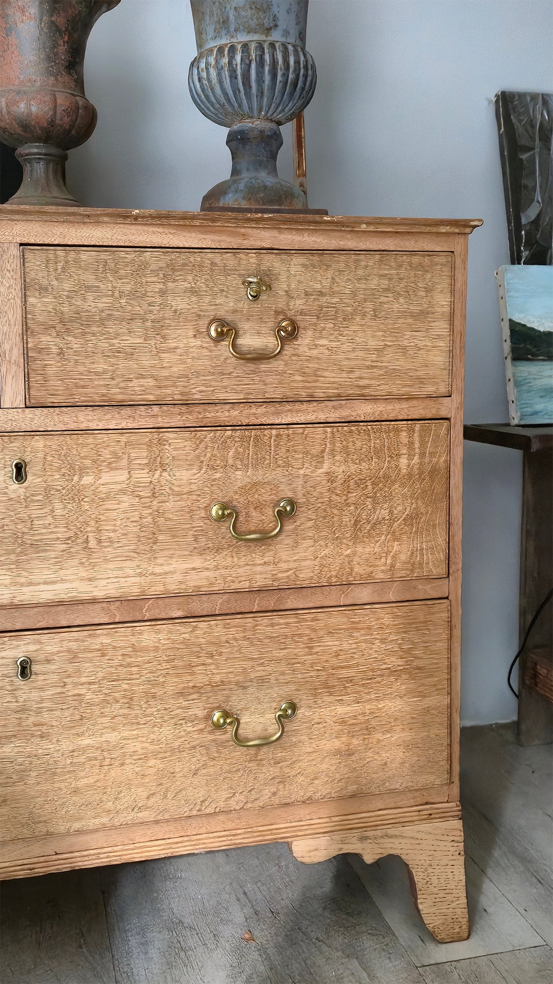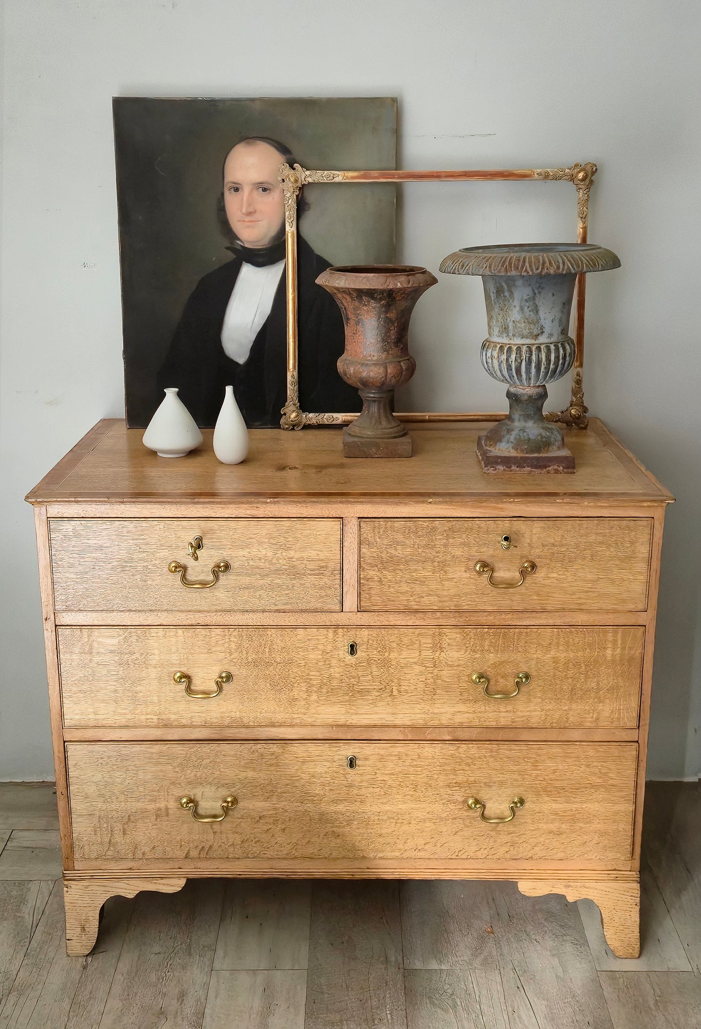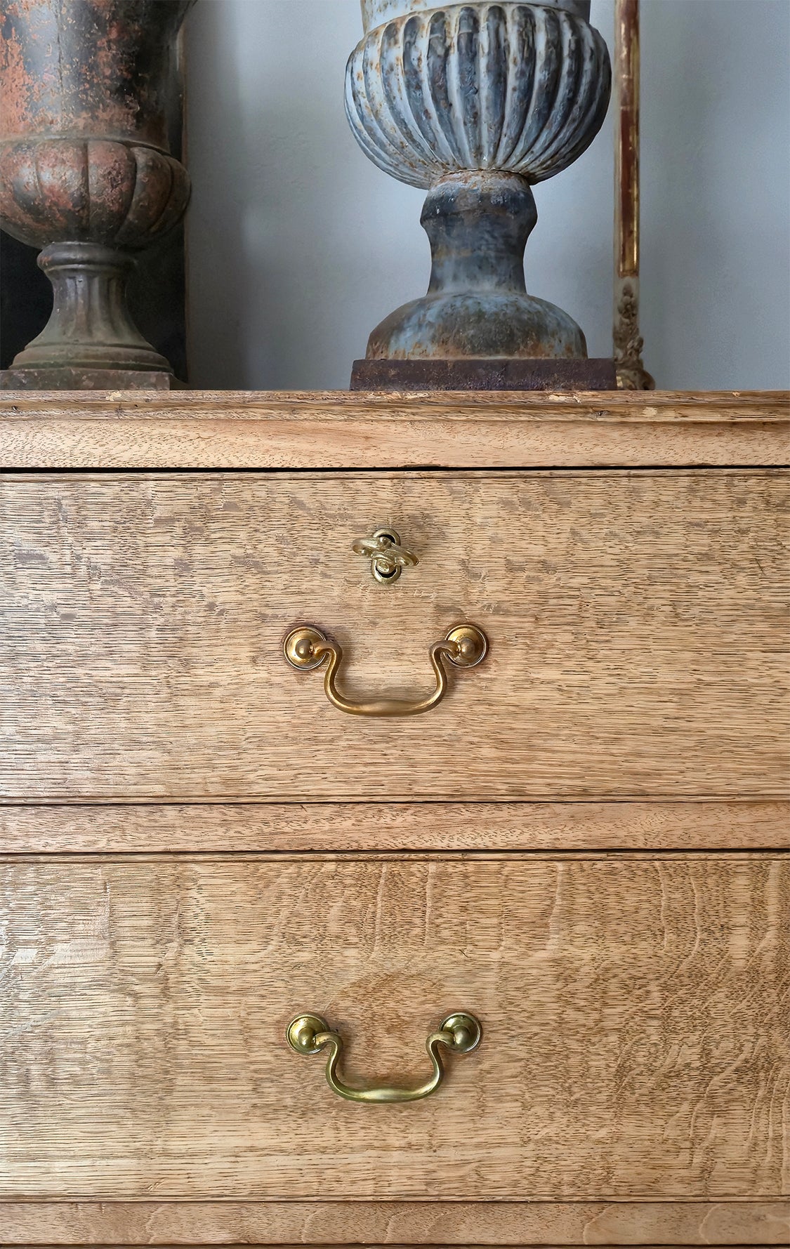 Antica Cassettiera inglese in Rovere a 4 cassetti probabilmente di epoca Georgiana tardiva / inizio Vittoriana (fine XVIII – metà XIX secolo)
