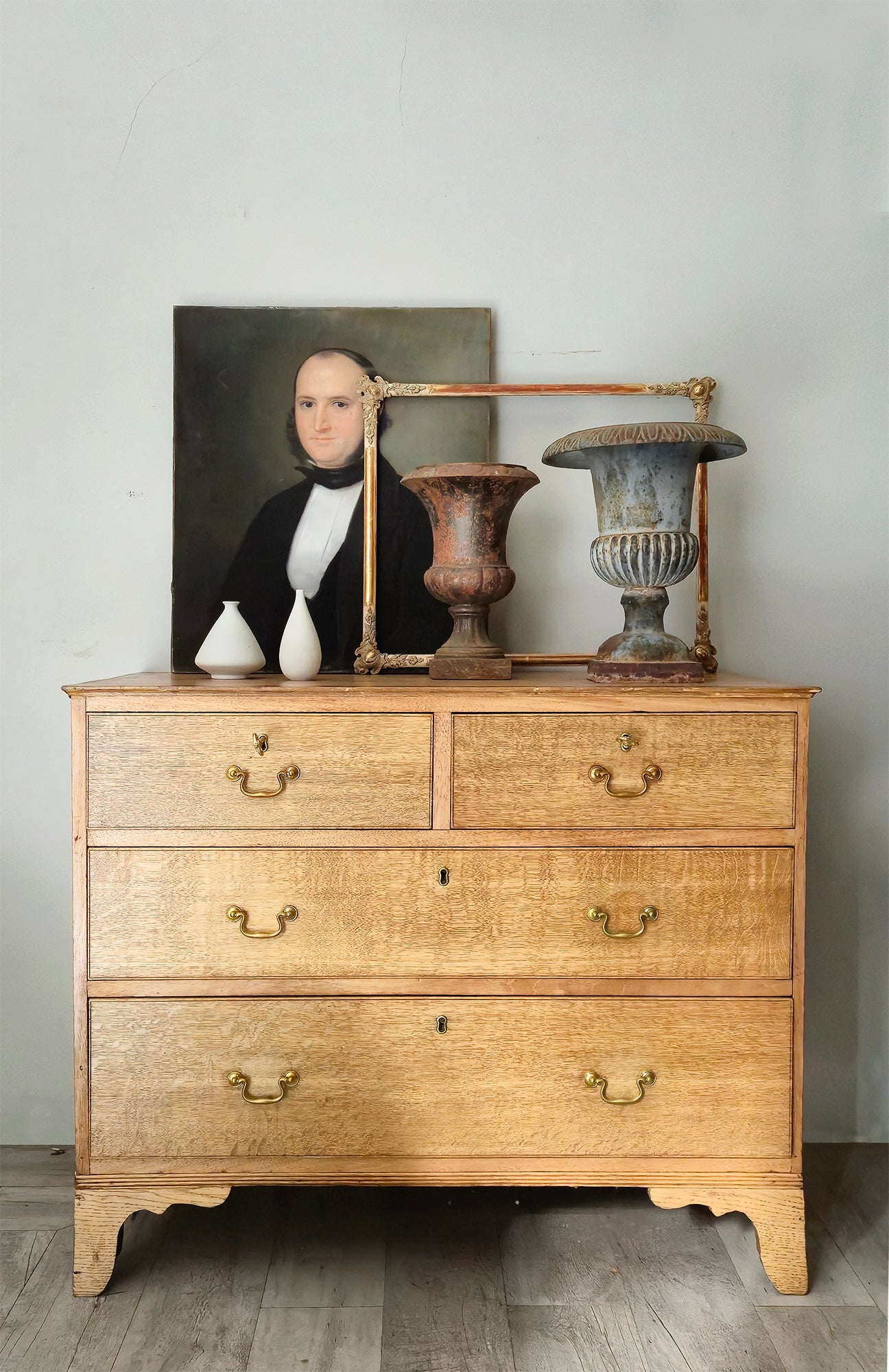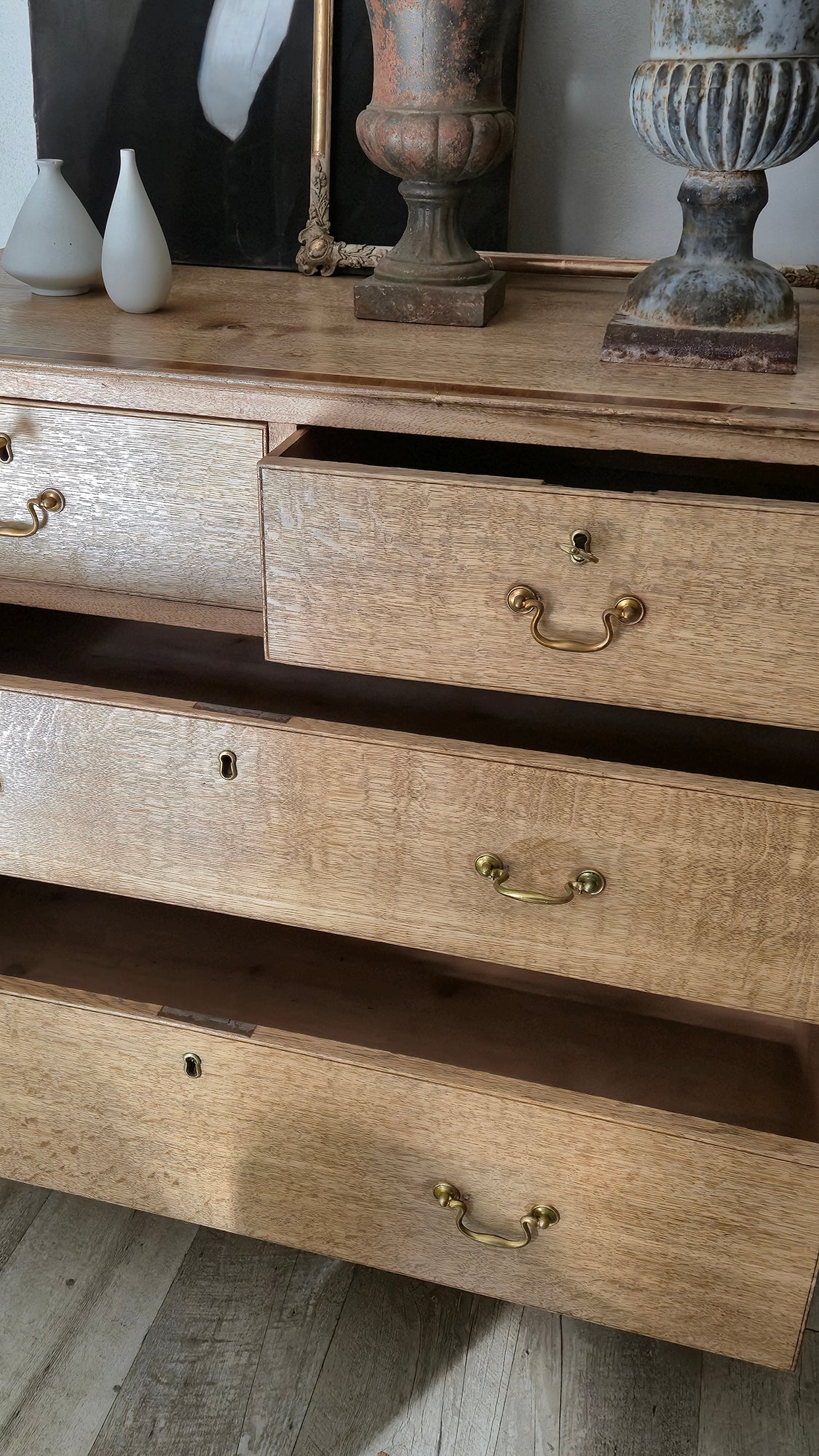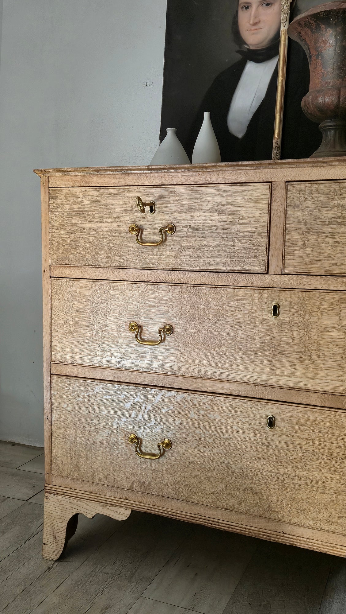 Antica Cassettiera inglese in Rovere a 4 cassetti probabilmente di epoca Georgiana tardiva / inizio Vittoriana (fine XVIII – metà XIX secolo)