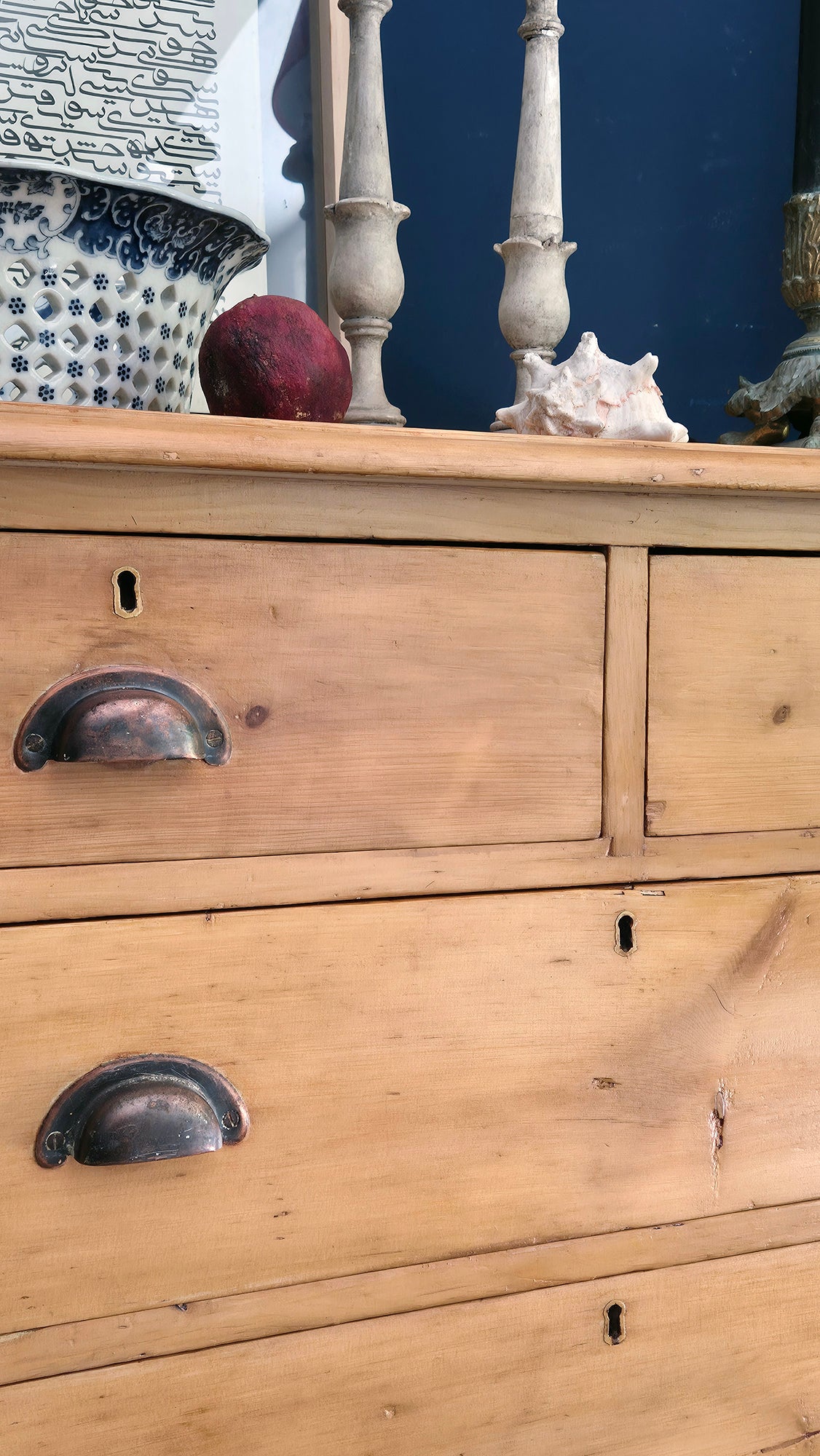 Antica Cassettiera inglese in Pino a 5 cassetti