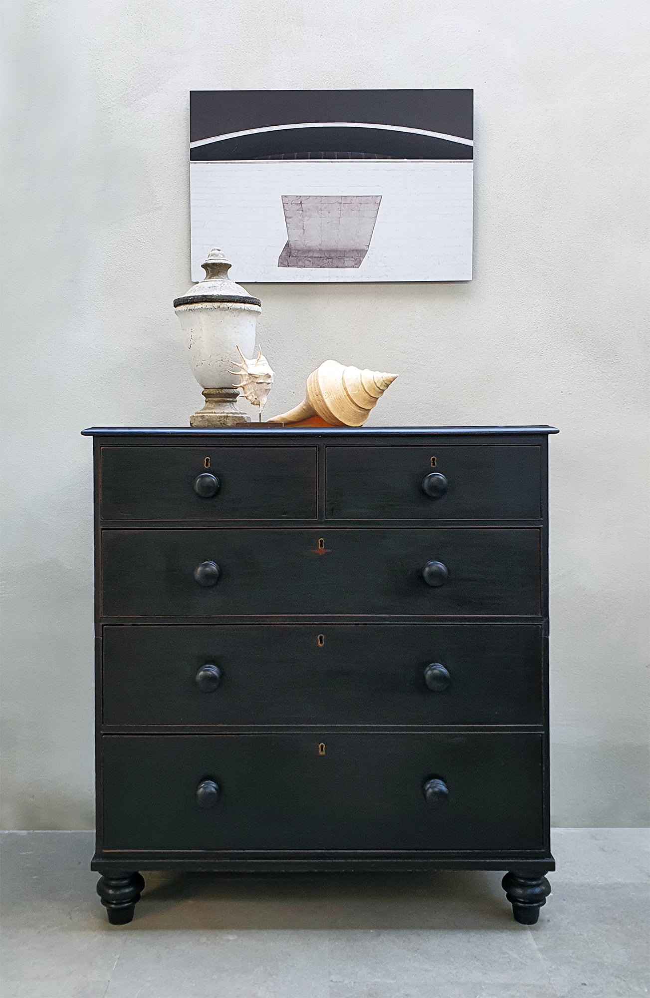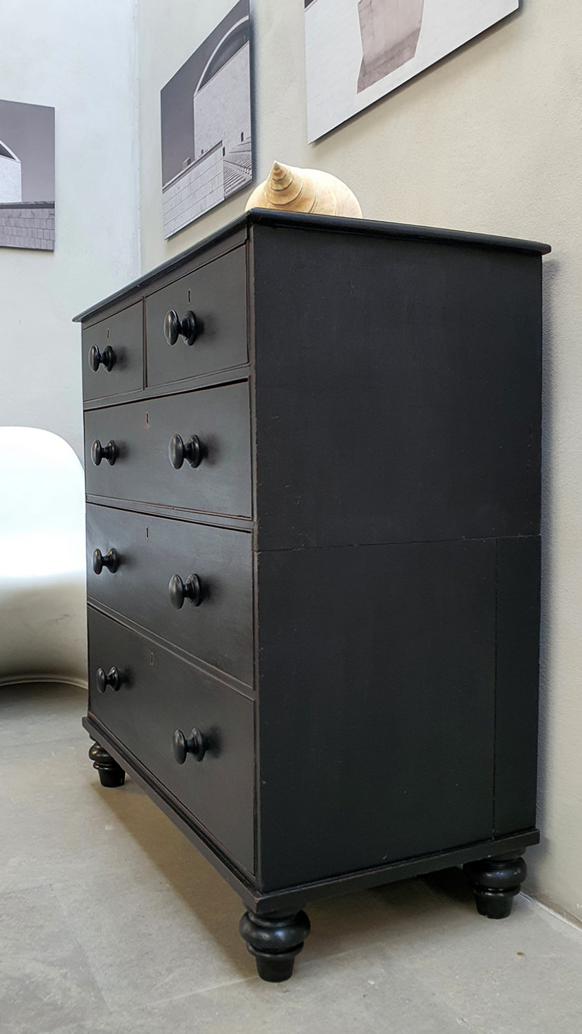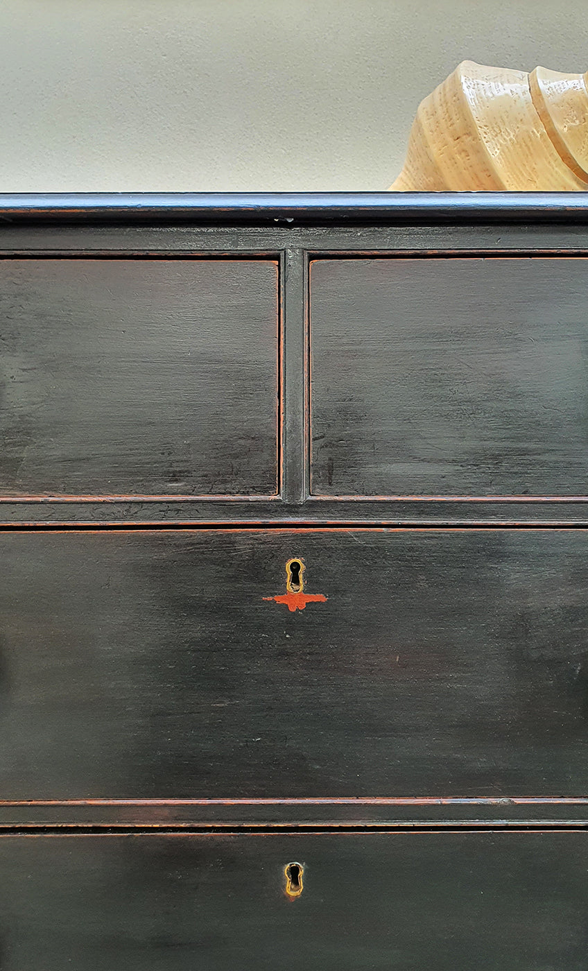 Cassettiera da Campo inglese con Stupenda Patina Naturale del Tempo | La Cassettiera ha una bellissima misura equilibrata con poca profondità, perfetta per ogni stile di interni | Essendo una cassettiera da campo è divisa in due parti per essere più facilmente trasportabile