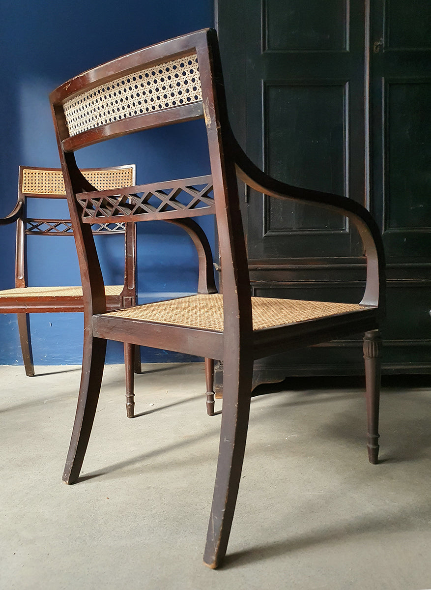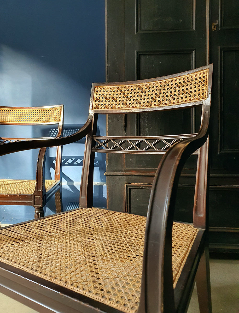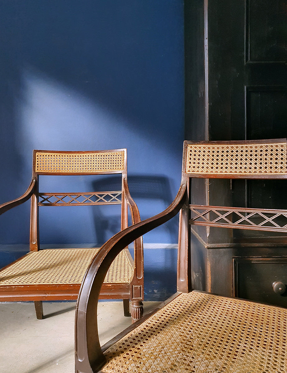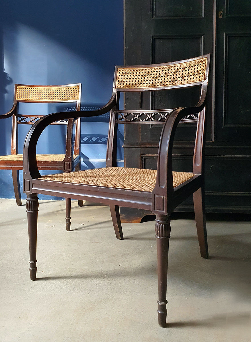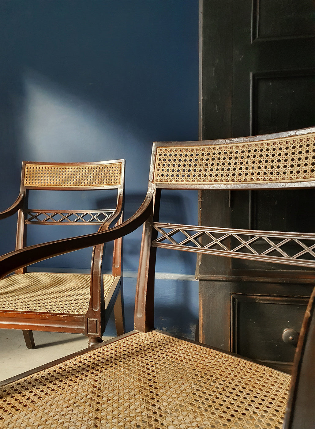 Coppia di Poltroncine Regency in mogano e paglia di Vienna | UK, metà '800
