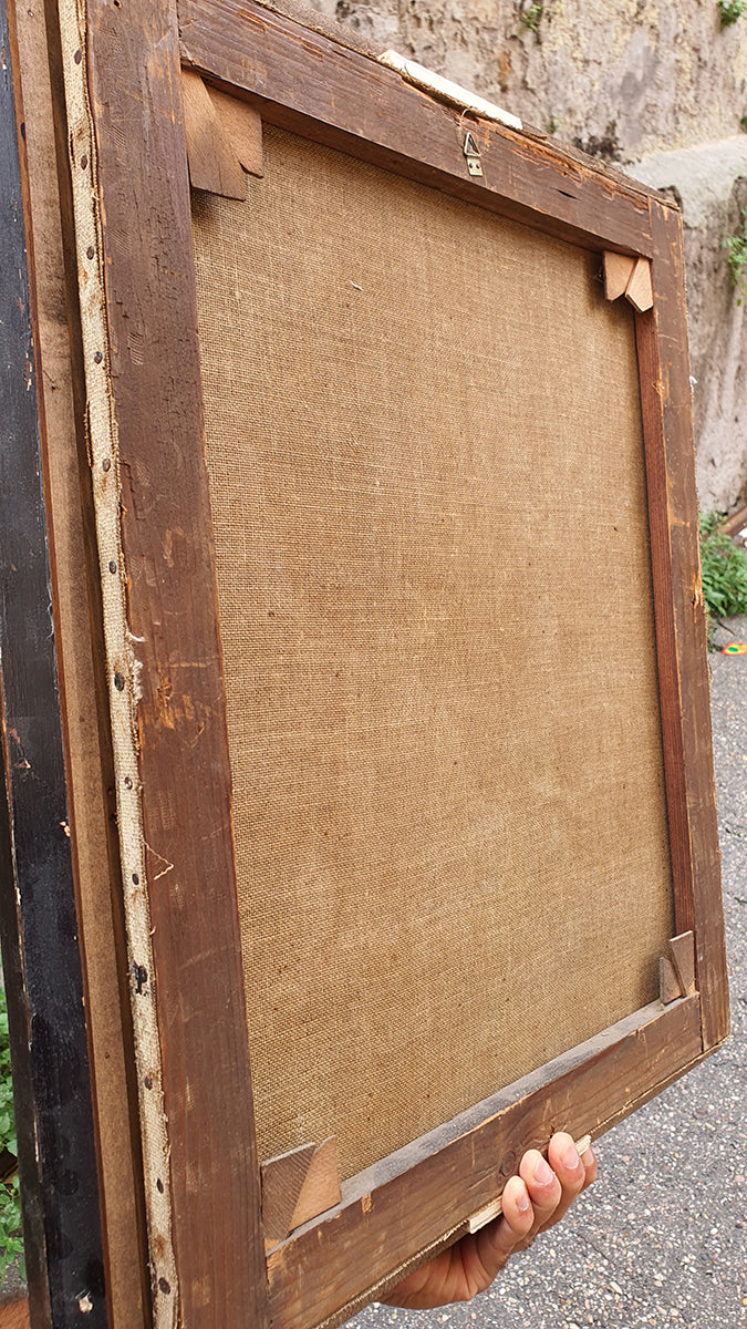 Dipinto con Cornice Antica in Legno verniciato scuro | Segni del Tempo sulla Tela che non intaccano la bellezza del dipinto | Perfetto per ogni stile di interni |