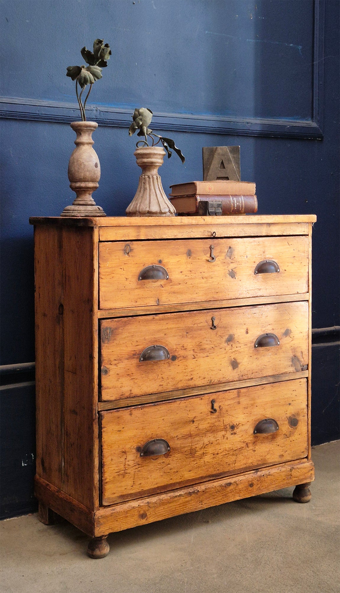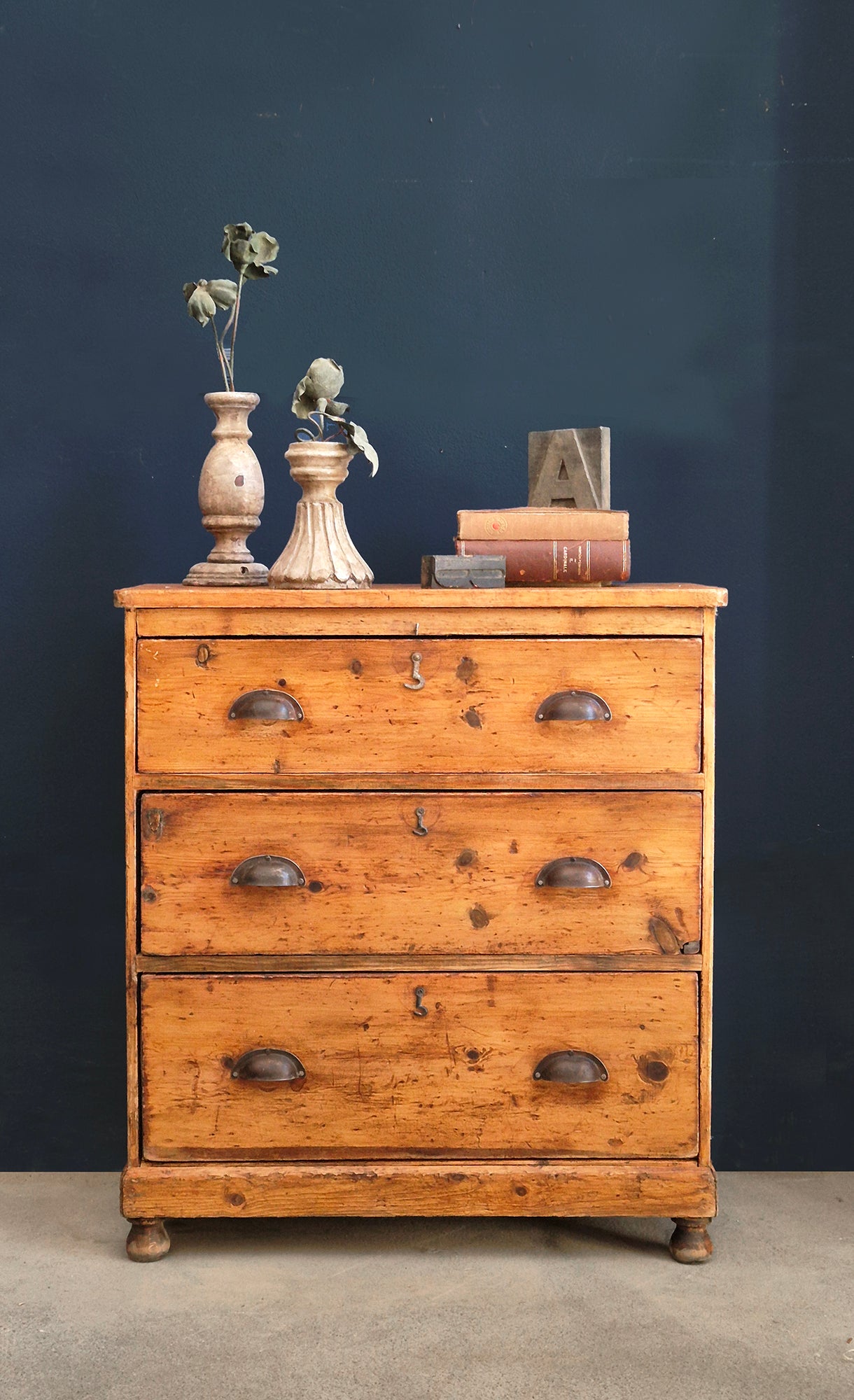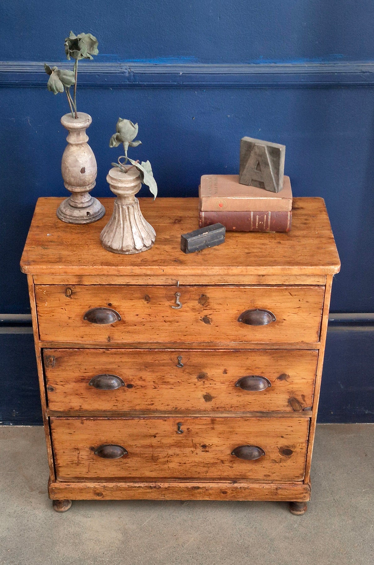 Piccola Cassettiera Antica in Pino | UK, metà '800