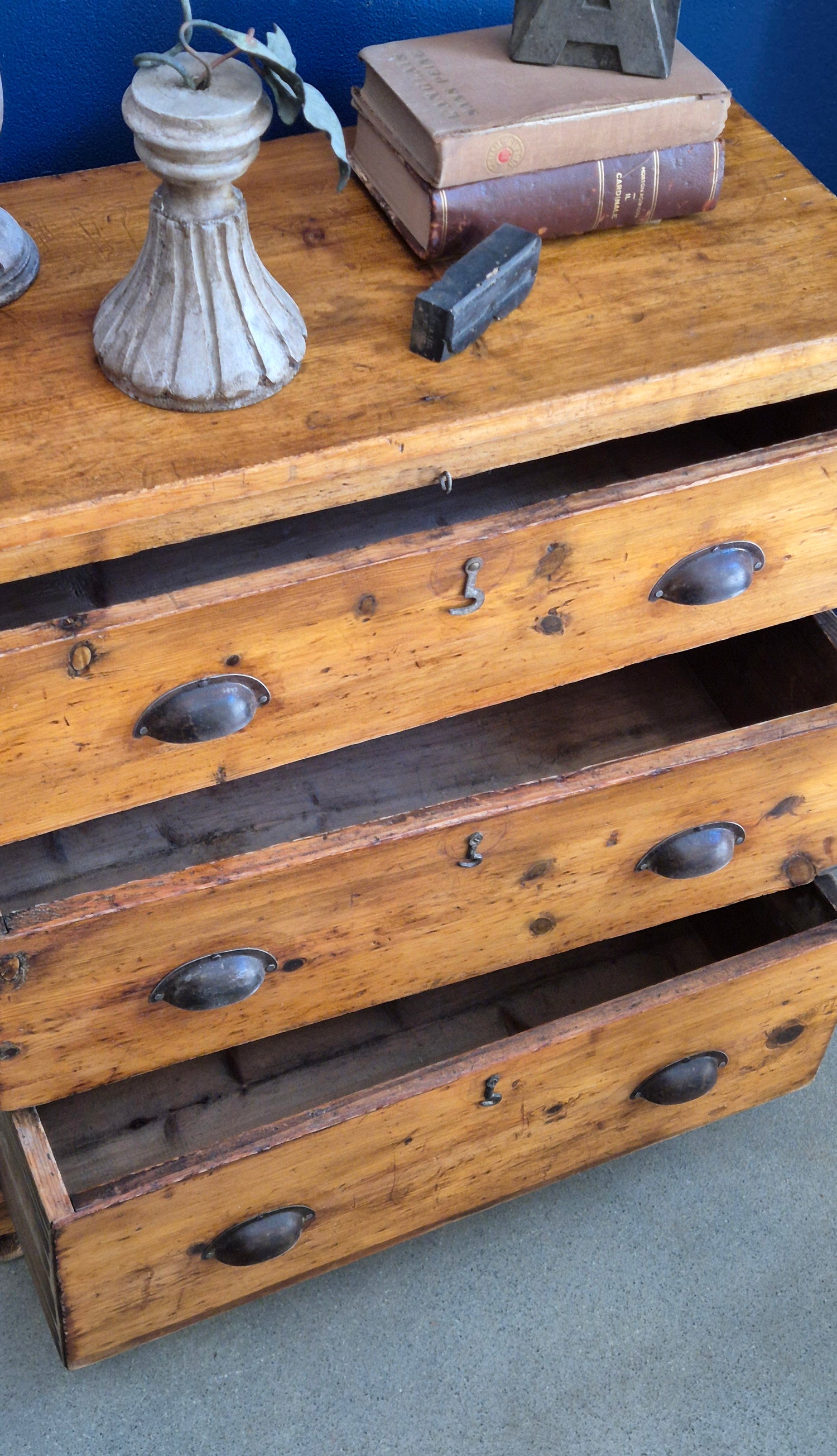 Piccola Cassettiera Antica a 3 Cassetti in legno di Pino