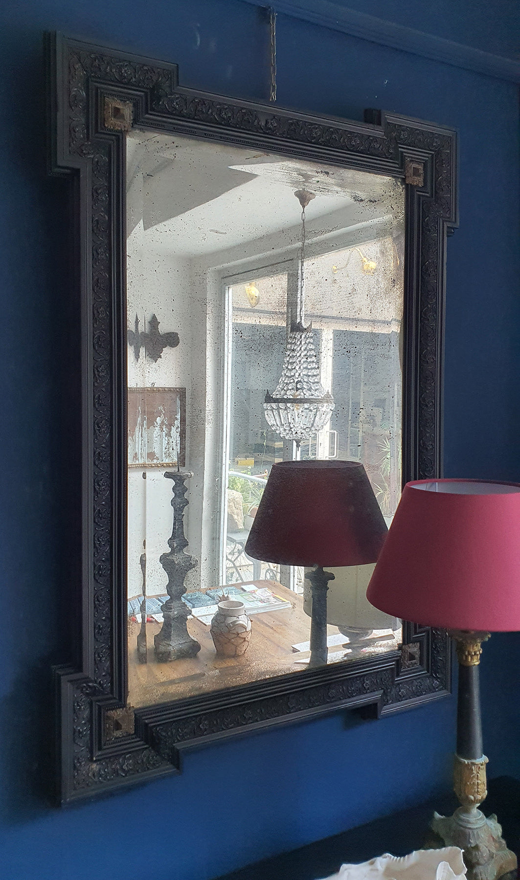 Specchio Francese al Mercurio con Cornice Ebanizzata | fine '800