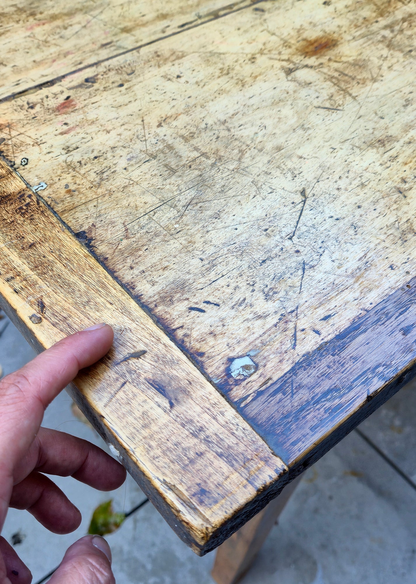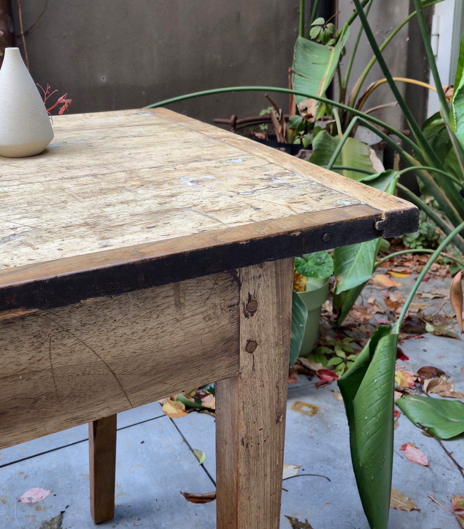 Antico Tavolo in Legno con top in pioppo e struttura in Noce