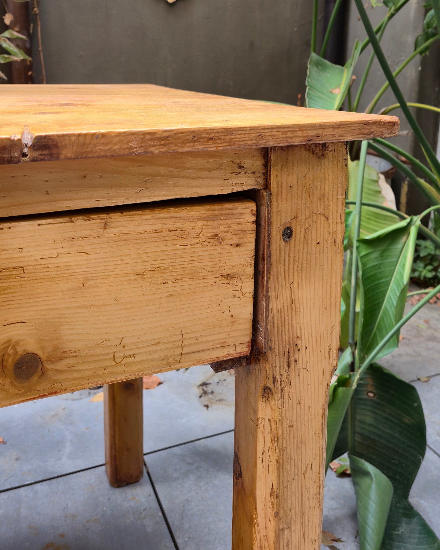 Cassetto Grande e Unico tipico dei tavoli da lavoro o da cucina di fine Ottocento e primo Novecento, soprattutto in ambienti contadini. Questo tipo di struttura era pensata per contenere utensili, tovaglie o piccoli oggetti d’uso quotidiano.
